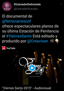A las 14 horas del pasado domingo veintidós de marzo era presentado, en nuestro canal de YouTube y en abierto para todo el mundo, "Viernes Santo 2019", un audiovisual en el que vemos, a pie de calle, la estación de penitencia de la Fervorosa Hermandad de Nazarenos y Cofradía de Penitencia del Stmo. Cristo de la Buena Muerte y Ntra. Sra. del Amor y del Trabajo de Granada durante la Semana Santa de 2019.